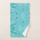 An elegant turquoise bath towel set with an abstract fluid marble pattern.