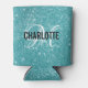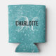 Elegant turquoise glitter monogram name can cooler