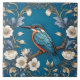 Elegant Turquoise Kingfisher Bird Floral Tile