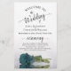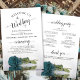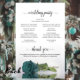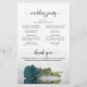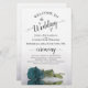 Ces programmes de mariage sont élégants et de bon goût, tout en étant toujours à l'aise avec le budget. Le design se compose d'un seul rose turquoise ou turquoise à long tige posé sur son côté, réfléchissant dans un bassin d'eau avec vagues et ondulations. La typographie présente une calligraphie en écriture noire dentée, et il y a de la place pour des détails sur la cérémonie, la fête de la mariée, et un bref merci.