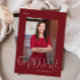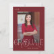 This elegant red graduation announcement card features modern graduate typography with one photo on the front, and a full photo back of the card.