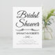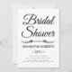 Elegant black and white typography and flowers floral wedding bridal shower invitation. It displays your names in a cursive script style typography and two black flowers with leaves. The backside includes a floral pattern.
