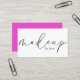 Elegant typography script "makeup" with custom name on the front and a modern elegant layout on the back with sans serif font. This card comes in a variation of colours so choose the one you prefer or contact me through my store for further personalization of custom script or colours.