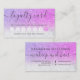 A modern, stylish loyalty card for hair and makeup artist business card with modern hand lettering style brush typography in white on a trendy purple and pink glitter and white marble trendy and elegant background. If you need any customization, don't hesitate in contacting me