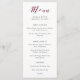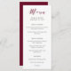 This stunning wedding menu features marsala/burgundy coloured calligraphy along with modern black text, on an elegant white background. Perfect for a formal, traditional wedding with a modern spin!