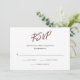 This stunning wedding RSVP card features marsala / burgundy coloured calligraphy along with modern black text, on an elegant white background. Perfect for a formal, traditional wedding with a modern spin!