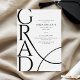 Celebrate a proud academic milestone with this elegant minimalist graduation party invitation. The design features bold modern typography with the word “GRAD” displayed in a large vertical layout, creating a stylish and contemporary look. Clean black text on a crisp white background adds a timeless and sophisticated feel. A subtle flowing line detail adds movement while keeping the design simple and refined.