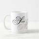 A scripted monogram of first name and the last initial in modern minimal colours of contrasting black, white and grey.