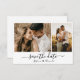 Elegant Modern Minimalist Typography Script 2 Photo Collage Save The Date Cards in black and white. This romantic delicate design perfect for modern wedding. Features 2 grid photo collage, a whimsical calligraphy in hand lettered style swash tail font calligraphy or typography script and a love heart. Easy to personalize it with your wedding details and pictures.