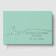 This guest book provides an ideal space for friends and family to leave their signatures and warm messages. Made with high-quality materials, it showcases the word 'Love' in an elegant gold or silver script, placed against a chic mint green backdrop. Personalize it with your names and wedding date to create a unique keepsake. This cherished memento will serve as a beautiful reminder of your special day for years to come.