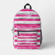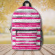 Elegant Valentine Pink Silver Hearts on Striped Printed Backpack