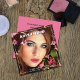 These unique and modern business card features a makeup model in a floral background.