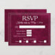 Cette élégante carte de réponse RSVP présente un fond bordeaux profond avec une texture douce de faux-velours et un cadre raffiné à double bordure. Un lettrage serif classique associé à une écriture élégante ajoute une touche intemporelle, tandis que la mise en page épurée comprend des options de réponse, des choix de repas et une ligne pour les noms des invités. Parfaite pour les mariages formels, les célébrations en soirée et les suites d'événements sophistiqués, cette carte RSVP se coordonne parfaitement avec des modèles d'invitation luxueux aux tons de bijoux.