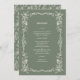 Elevate your reception tables with this elegant vintage Victorian-inspired wedding menu, featuring delicate botanical line art framing your meal selections on a sage green background. The ornate floral border adds timeless charm and sophistication, beautifully complementing garden weddings, classic soirées, rustic celebrations, and antique-inspired themes.