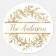 Elegant, botanical wreath in attractive gold awaits that addition of your family's name!  This intertwining leaves design makes for a classic, yet refined look that will add a beautiful touch to invitations, thank you notes and your outgoing holiday cards this year.