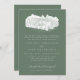 Impress your guests with this elegant formal wedding invitation by JessicaAmber. This classic card features a detailed illustration of a vineyard, which you can replace with an image of the destination you will be married at (transparent background preferred). Elegant white lettering displays the bride and groom names, and details of the wedding, including the location, date and time. The background is a beautiful sage green. This invitation is preferred for when the bride's family is hosting the event.