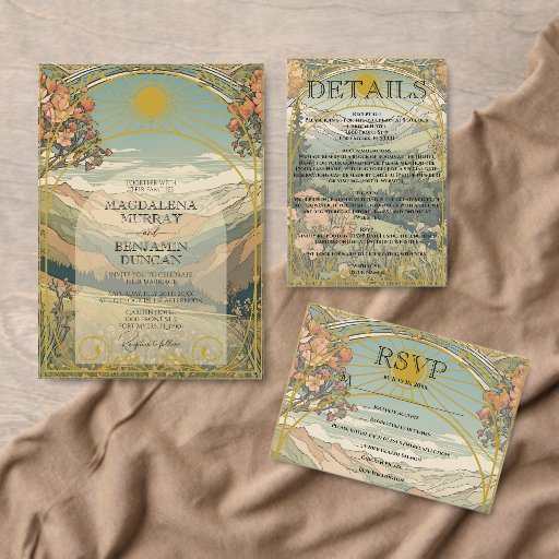 Elegant Vintage Art Nouveau Sunset Nature Wedding