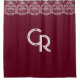 A unique custom-made shower curtain for your bathroom decor. Elegant Vintage Victorian Burgundy White Lace Show Curtain. Personalize with your own monogram initials - or delete. Great gift idea.