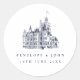 These elegant wedding stickers feature a vintage illustration of a castle, which you can replace with an image of your destination wedding venue. Dark blue lettering lays out the couple's names and the date of the wedding.