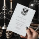 Announce your special day with this elegant vintage gothic design with a vintage eerie bat scene. This unique black and white wedding invite is perfect for couples seeking a sophisticated, classic, or dark aesthetic for their memorable celebration. Fully customizable, it sets a dramatic, vintage aesthetic and darkly romantic tone for your ceremony. Created by Simply Farmhouse Press.