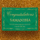 Elegant, vintage green and gold graduation party "Congratulations" banner personalized with the name of the graduate, their school, and their graduation year. The green background is customizable with Zazzle's design tool. Change it to your school colours if you want. Contact me for assistance with your customizations or to request additional matching or coordinating Zazzle products for your event.