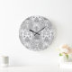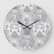 Elegant Vintage Grey White Flowers Pattern Large Clock