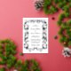Vintage illustration of an ornate frame with floral, botanical (fruit, branches, leaves, vines), animal (birds, insects) elements and a bow for a classy wedding. The ornamental border and the bride & groom's names are in real silver foil.