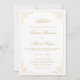 A white ivory colour Islamic Muslim wedding invitation card to send out to your family and friends to celebrate this special day. This nikah ceremony invite card has a gold romantic script font with a vintage acanthus leaf filigree decoration in the corner of the frame. You can personalize this design with the help of the Design Tool on Zazzle. You can edit the event details like date of the nuptials, the venue address and all the other information that is written. This is a printable template but you can have it as an instant download if you prefer a sustainable option. Arabic calligraphy. Luxury wedding stationery. Copyright.