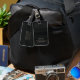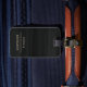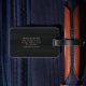 This minimalist luggage tag features elegant, vintage look gold text typography and a simple classic layout on a dark black textured look background for a professional look for the business traveller.