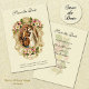 This a beautiful vintage traditional Catholic "Save the Date" with the vintage image of the Blessed Mother & St. Joseph in a gold frame with cherry blossoms and a light lace background. A scripture verse is below. Text and design can be modified. We offer coordinating wedding invitations also.