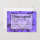 Cette CARTE RSVP violet romantique est parfaite pour tout jardin, botanique, floral, romantique, extérieur, rustique, vintage ou mariage formel. C'est un excellent choix pour n'importe quelle mariée du printemps ou de l'été. Faites-le facilement vous-même en sélectionnant Personnalisez ce modèle et en tapant vos informations. En quelques secondes, vous verrez vos invitations uniques et étonnantes! Une hydrangée de lavande violette magnifique de mon jardin ! Partie d'une collection- https://www.zazzle.com/collections/hydrangeas_lavender_lilac-119924955114862987