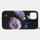 Ajoutez un peu de luxe à votre téléphone avec ce coque chic avec un amas de fleurs luxuriantes en lavande violet et bleu indigo sur un arrière - plan noir dramatique. Personnalisez avec votre unique initiale dans le coin inférieur gauche en lettrage classique en ivoire.