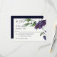 Elegant Moody Purple Navy Blue Cream Vintage Floral Dark Wedding RSVP — ce design magnifique et romantique présente des éléments floraux vintages violets, bleu marine et blanc crème et un script de calligraphie, et est facile à customiser avec vos propres informations mariages. Conception de T.K. Goforth.