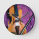 - Elegant Classic Violin, on Purple Silk. Round Clock.