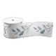 Elegant holiday satin ribbon featuring blue watercolor greenery. Make your gifts truly special this year.