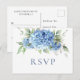 Elegant Watercolor Blue Hydrangea Wedding RSVP Postcard