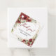 Elegant boho design for wedding favour tags features watercolor blush and burgundy roses flowers mixed eucalyptus greenery mixed greenery foliage woven into faux gold frame. Modern script lettering.