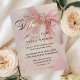 This elegant watercolor wedding invitation features a blush pink coquette bow with calligraphy script font in silver foil and a place on the back to personalize with your photo, perfect for an elegant wedding event. All text on this invitation is in foil. Also available in gold foil or rose gold foil.