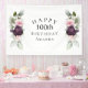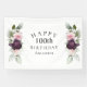 Célébrez un anniversaire marquant avec cette belle bannière qui a des bordures florales en roses bordeaux et roses de chaque côté du texte élégamment placé. Les couleurs comprennent le rose pâle, le rouge bordeaux profond et le prune mélangés à la verdure éthérée et de minuscules fleurs blanches d'accent. Personnalisez le modèle de texte avec vos informations. Présenté ici comme une célébration du 100e anniversaire, vous pouvez modifier l'âge à n'importe quel âge anniversaire!