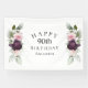 Celebrate a special milestone birthday with this beautifully feminine banner that has floral borders in burgundy and pink roses on each side of the elegantly placed text. Colours include pale blush pink, deep burgundy red and plum mixed with ethereal greenery and tiny white accent flowers. Personalize the text template with your information. Shown here for celebrating a 90th birthday, you can edit the age to any age birthday!