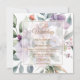 Introducing our minimalist and trendy wedding invitation, featuring a pretty flowers in light purple and green leaves and more, with an elegant background , creating a clean and stylish look for your special day.