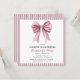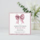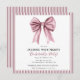 Announce the upcoming bachelorette celebration with this stunning invitation. The centerpiece is a delicate pink watercolor bow, symbolizing femininity and celebration. Complementing the bow is a refined mauve and white striped border, offering a timeless aesthetic. This card is designed to convey elegance and excitement for the bride's special occasion. Easily personalize with your event information and share the joy with all attendees.