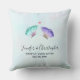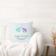 Commemorative wedding pillow with a delicate romantic design. 2 elegant watercolor butterflies, painted pastel purple and green. A little pink polka dot heart above them. A light blue watercolor background with hints of light pink. Personalize with wedding names, text such as happily ever after, and their wedding date.