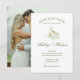 Elegant Watercolor Chapel Wedding Save the Date card. This sophistcated Save the Date features a delicate, hand-painted watercolor illustration of a traditional white chapel. Lovely green script text for the names of the couple, paired with elegant serif font for the detials. Upload your favorite engagment photo on the back of the card. Perfect for traditional church ceremonies, spring or summer weddings, and couples seeking a romantic, fine-art aesthetic for their special day. Pair with the matching invitation and other items in the collection at Cross Fox Design, Contact the designer for any customization questions