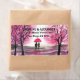 Beautiful, elegant watercolor cherry blossom wedding Return Labels. Romantic couple with a red umbrella art. Sakura, pink japanese, oriental flowers. You can personalize with your names and address.