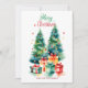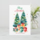 Elegant Watercolor Christmas Tree Holiday card featuring a festive watercolor Christmas tree adorned with glass ornaments and surrounded by wrapped presents. Personalize the card by adding a custom greeting and your family name. The Christmas tree holiday card reverses to your message displayed in dark lettering and a white background.