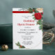 Elegant Watercolor Floral Holiday Open House Party Invitations features a festive holiday frame of watercolor flowers such as red roses, holly and pine foliage on a white background. Simply edit the text in the text boxes provided to personalize for your Christmas party. Designed for you by Evco Holidays. For more Christmas and Holiday designs visit www.zazzle.com/store/evcoholidays
