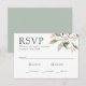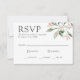 Simple and elegant, this watercolor floral wedding RSVP response card has a text template to include your meal selection entrees. A simple sprig of greenery and tiny peach coloured buds give a fresh nature-inspired look, along with a traditional style type face. Personalize the text with your required response date and mail selections. You can re-arrange the entree text to centre it after personalizing with your text. Enter your text in the design template, then choose "customize further" to re-position the text as needed. A matching suite of wedding stationery is available in this design and makes a wonderful choice for spring or summer weddings.