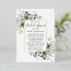 Modern Elegant Watercolor Botanical Greenery Bridal Shower Invitation Card includes eucalyptus leaves, green botanical foliage, dusty blue leaves and other beautiful botanical greenery. Trendy Calligraphy Script. Gold Foil Frame.