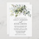 Modern Calligraphy Script Elegant Watercolor Botanical Greenery Wedding Invitation Card includes eucalyptus leaves, green botanical foliage, dusty blue leaves and other beautiful botanical greenery.